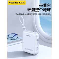 商品名称:品胜(PISEN) 充电宝自带线10000毫安时22.5W超级快充超薄小巧便携移动电源适用华为苹果小米自带双线快充D156