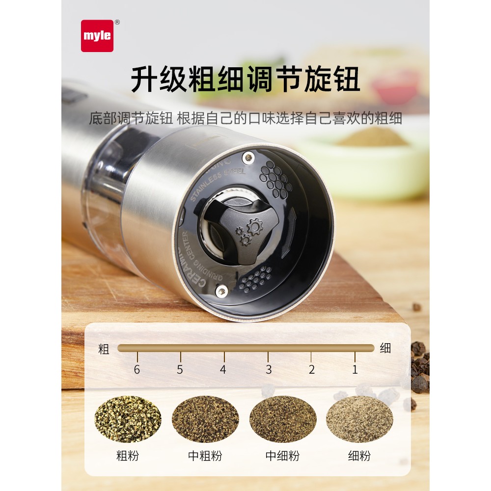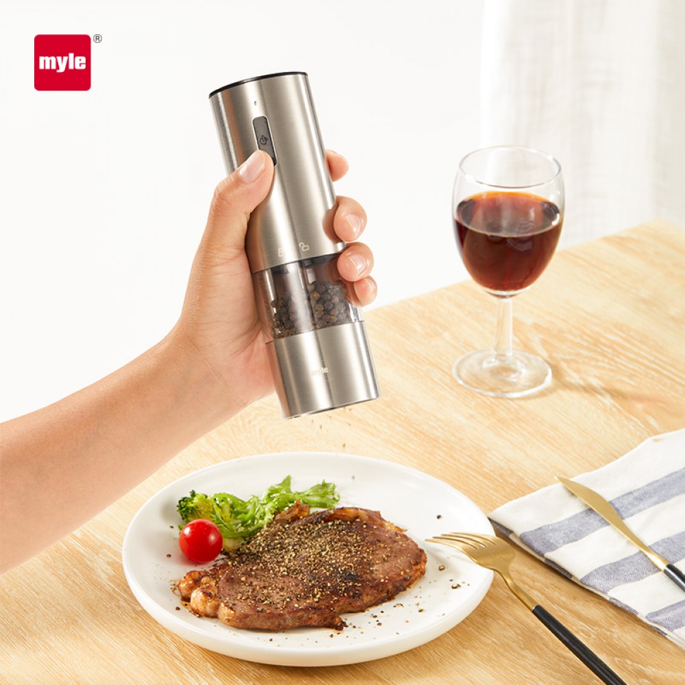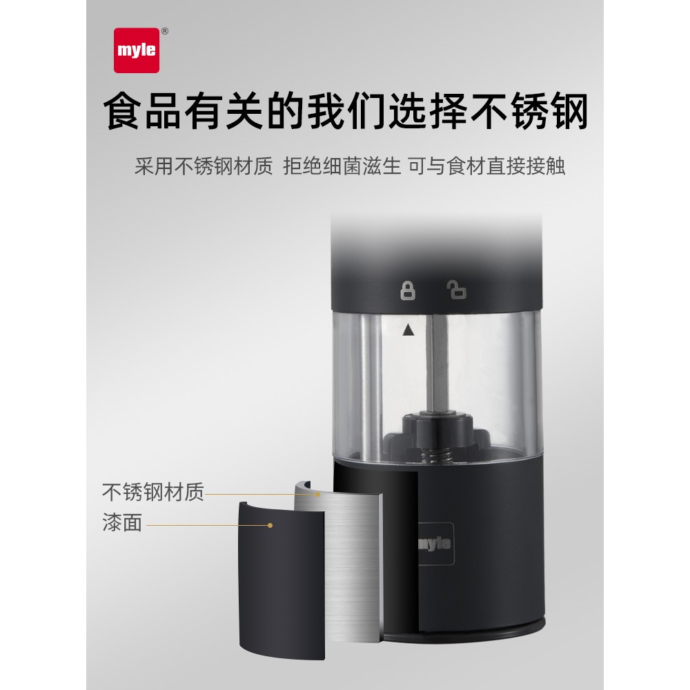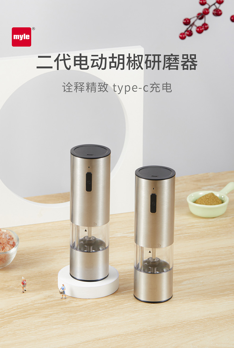 myle充电电动胡椒研磨器自动usb黑白胡椒粒花椒海盐不锈钢磨粉瓶