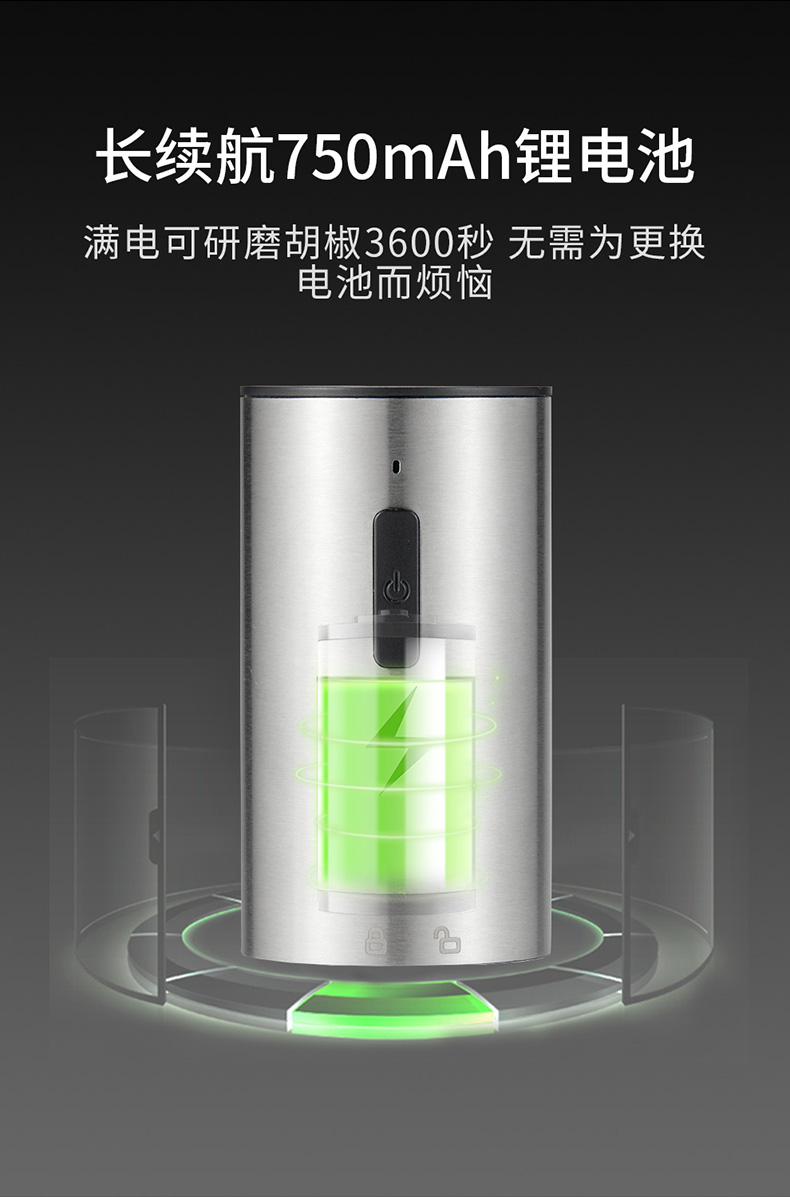 商品名称:myle充电电动胡椒研磨器自动usb黑白胡椒粒花椒海盐不锈钢磨粉瓶